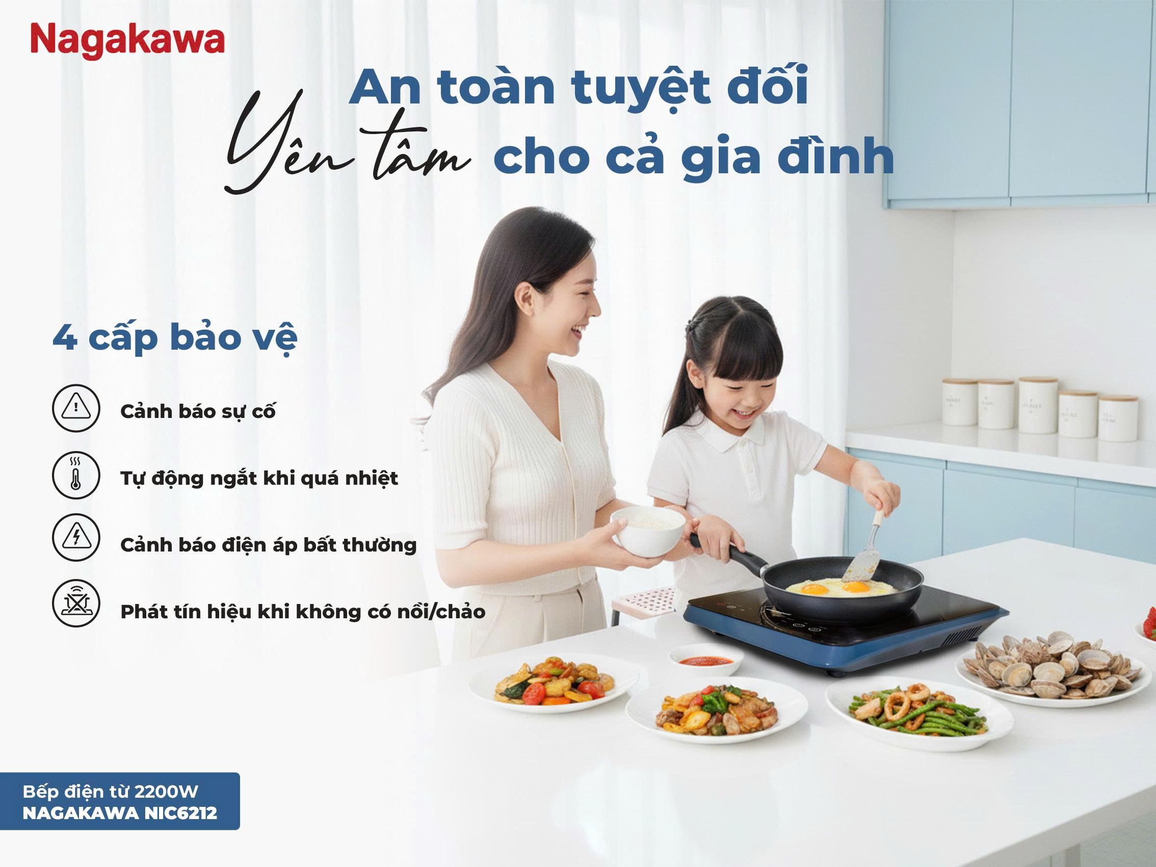 Trong nhịp sống bận rộn, ai cũng mong muốn có một căn bếp vừa tiện lợi vừa an toàn để chăm sóc bữa ăn cho cả nhà. Đặc biệt với những gia đình có trẻ nhỏ hoặc ông bà lớn tuổi, một chiếc bếp điện từ nhỏ gọn, không khói, không gây khô da, khô mũi lại càng trở thành lựa chọn lý tưởng. Bếp điện từ 2200W Nagakawa NIC6212 chính là người bạn đồng hành hoàn hảo, giúp bạn nấu ăn nhanh chóng, an toàn và tiết kiệm hơn mỗi ngày.