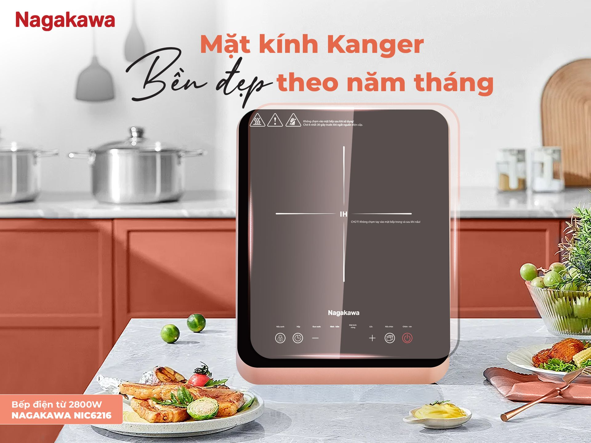 Bếp điện từ 2800W Nagakawa NIC6216 sở hữu mặt kính Kanger cao cấp, nổi bật với khả năng chịu nhiệt, chịu lực và chống trầy xước. Kính chống sốc nhiệt giúp bếp hoạt động ổn định ngay cả khi thay đổi nhiệt độ đột ngột. Không chỉ bền đẹp, mặt kính còn dễ dàng lau chùi sau mỗi lần nấu, giữ cho căn bếp của bạn luôn sáng bóng và hiện đại.