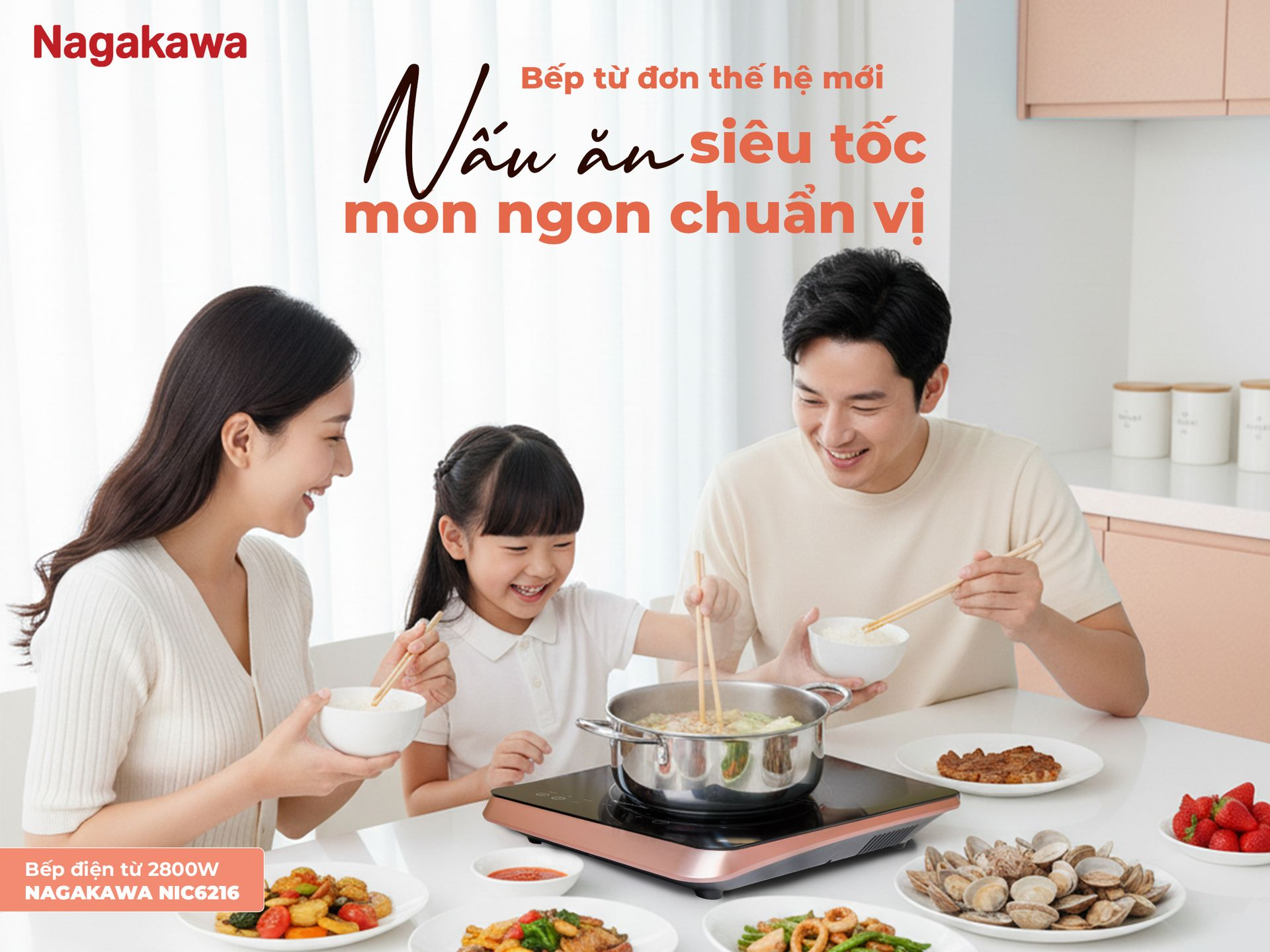 Trong căn bếp hiện đại, tốc độ và sự tiện lợi luôn là ưu tiên hàng đầu. Và giờ đây, Bếp điện từ 2800W Nagakawa NIC6216 trở thành bếp từ đơn đầu tiên sở hữu công suất 2800W, mang đến khả năng gia nhiệt nhanh vượt trội, rút ngắn thời gian nấu nướng tới 1,5 lần. Vừa nhỏ gọn, tiết kiệm diện tích, vừa mạnh mẽ bậc nhất, Bếp điện từ 2800W Nagakawa NIC6216 chính là lựa chọn tối ưu cho những gia đình muốn tận hưởng bữa cơm nóng hổi, an toàn và chuẩn vị mỗi ngày.