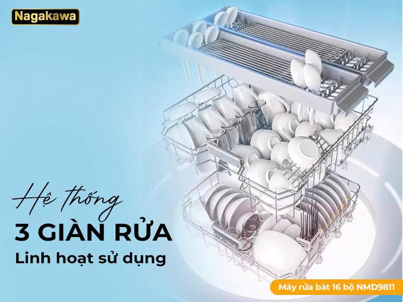 MÁY RỬA BÁT NAGAKAWA NMD9811 – CÔNG NGHỆ ĐỈNH CAO, BÁT ĐĨA SẠCH BONG, AN TÂM SỐNG KHỎE