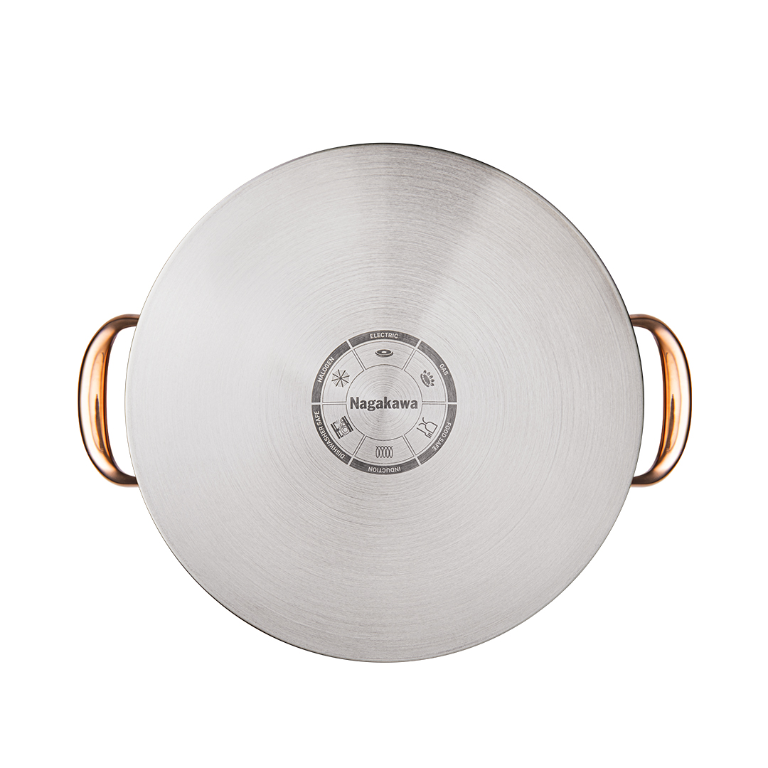 Nằm trong phân khúc cao cấp, chảo inox 304 đáy từ NAG1358-20 (20cm) mang đến trải nghiệm nấu nướng thật sang trọng, thật giàu dinh dưỡng và cũng trọn hương vị. Điểm nổi bật của sản phẩm nằm ở màu inox vàng đồng độc quyền cùng công nghệ mạ plasma nguyên tử PVD hiện đại. Tất cả làm nên bộ sưu tập nồi chảo inox tuyệt phẩm, sánh cùng bếp sang của mọi nhà.