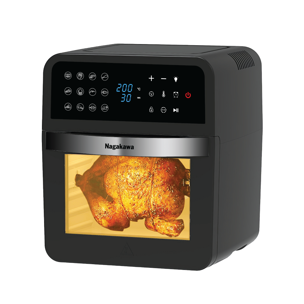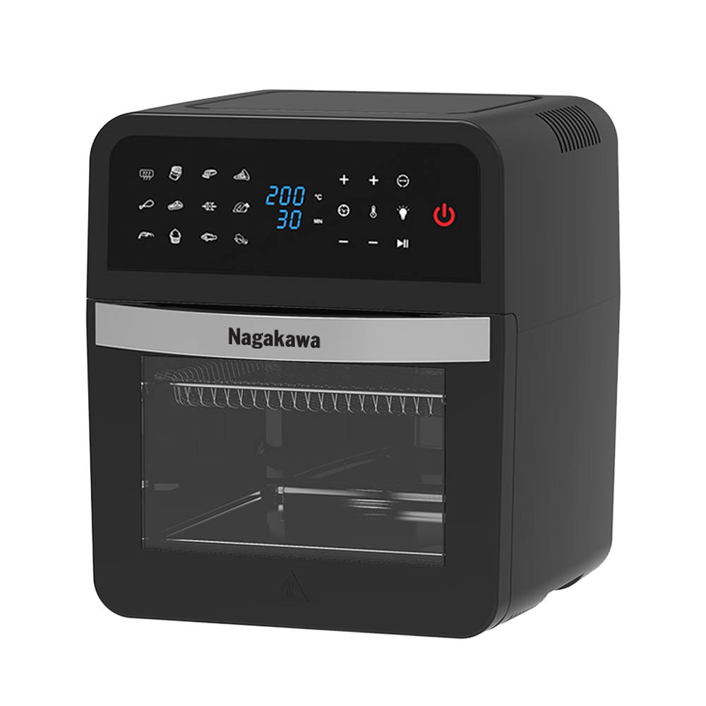 Nồi chiên không dầu Nagakawa NAG3307 bao gồm 12 chương trình nấu cài đặt sẵn, bao gồm: Làm nóng | Khoai tây chiên | Bánh mì | Cánh gà | Thịt bò | Bánh ngọt | Tôm | Cá | Pizza | Rau | Gà quay | Gà nướng