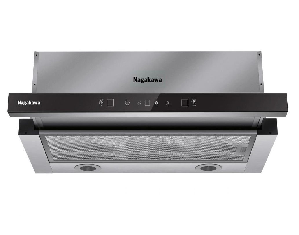 Máy hút mùi cao cấp Nagakawa NKKH01M70 thiết kế thân máy màu bạc, kính màu đen. Thân máy được làm từ kim loại sơn tĩnh điện cao cấp, mặt kính cường lực cao cấp tráng men cho độ bền cao, sáng bóng.