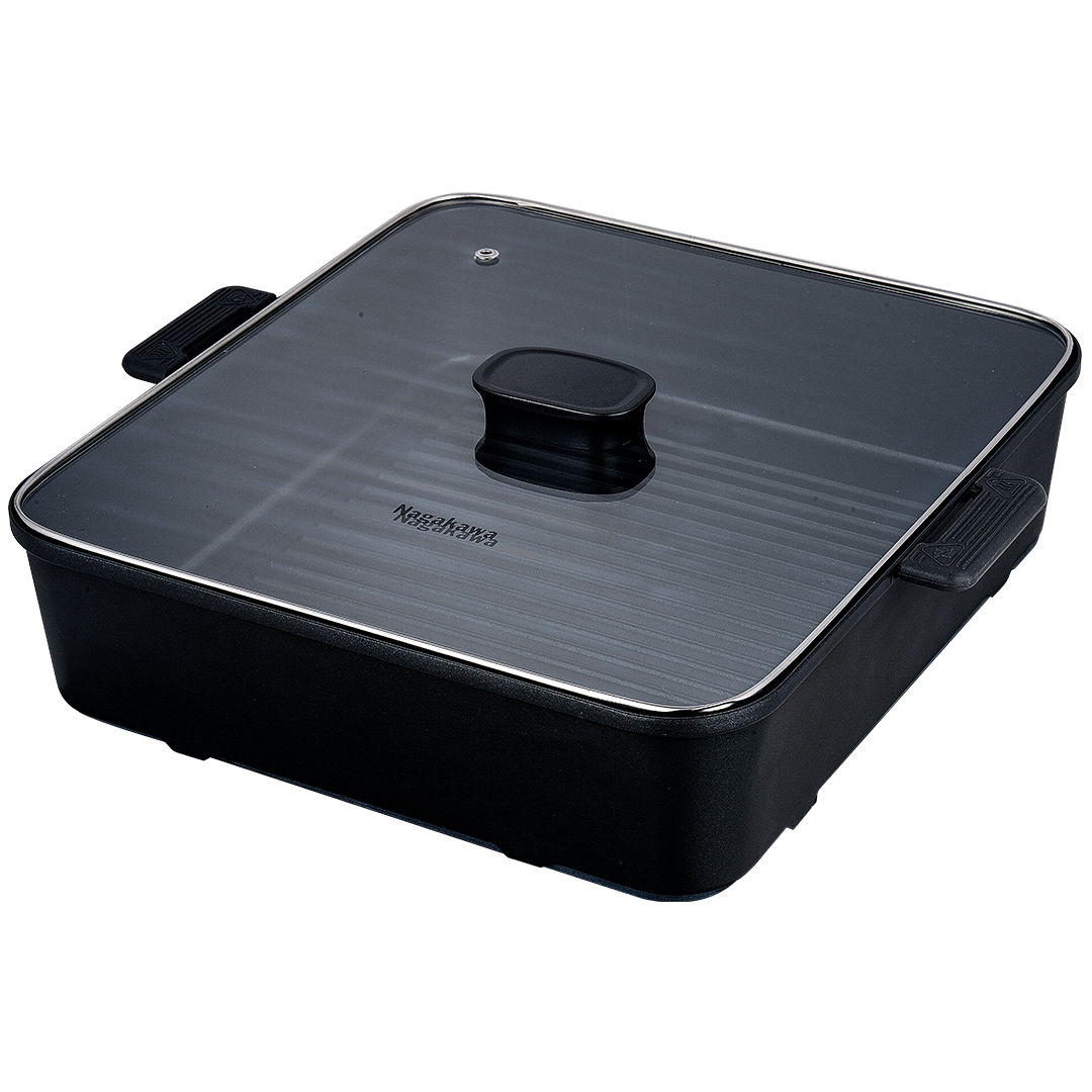 Nồi được trang bị nắp kính trong suốt dễ dàng quan sát quá trình nấu nướng, tay cầm cách nhiệt đảm bảo an toàn khi sử dụng và di chuyển. Vỉ nướng chống dính có các đường kẻ sọc trên bề mặt để hạn chế khả năng cháy dính xuống đáy nồi, thực phẩm ráo dầu tốt, nướng áp chảo ngon hơn.
