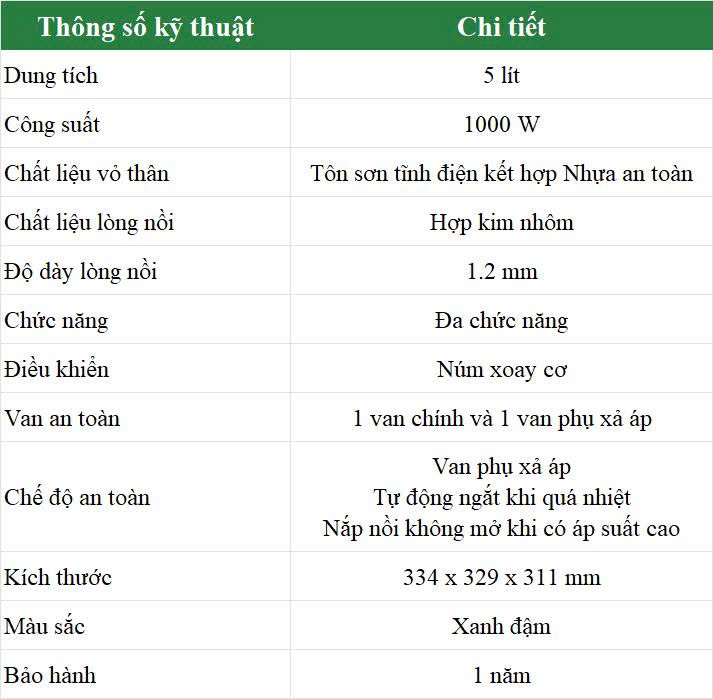 Dung tích 5 lít phù hợp cho gia đình từ 4–6 người, nấu một lần là đủ bữa, không lo thiếu.