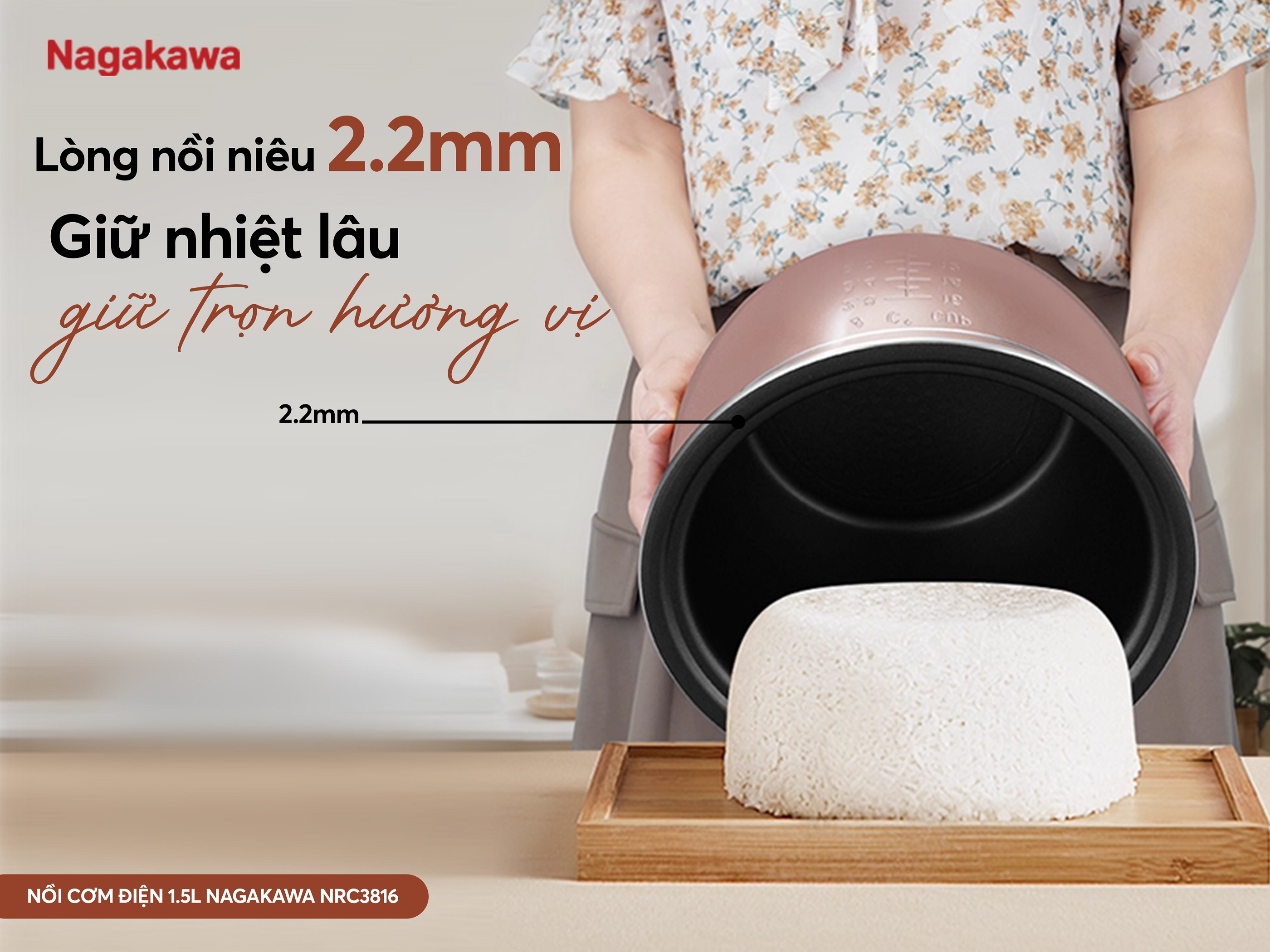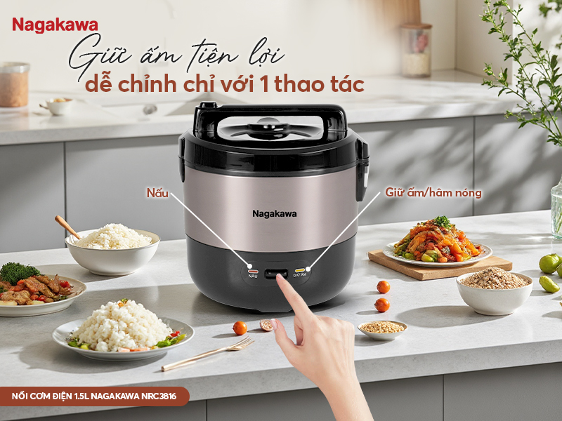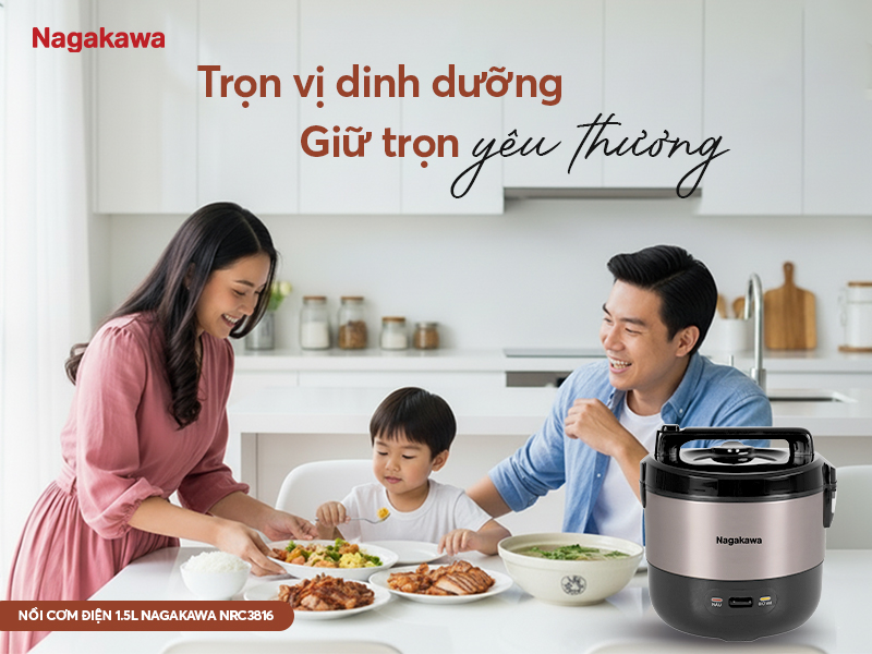 Trong nhịp sống bận rộn hôm nay, bữa cơm gia đình vẫn luôn là khoảnh khắc đáng quý – nơi mọi mệt mỏi dừng lại để nhường chỗ cho tiếng cười, cho sự sum vầy. Và trong từng khoảnh khắc ấy, Nồi cơm điện Nagakawa NRC3816 luôn sẵn sàng mang đến những hạt cơm trắng dẻo, thơm ngon – giữ trọn hương vị, giữ trọn yêu thương trong từng bữa ăn.