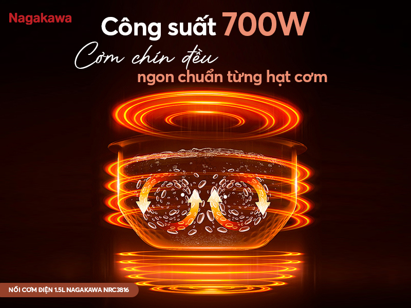 Công suất 700W - Cơm chín đều, ngon chuẩn từng hạt cơm