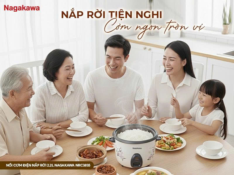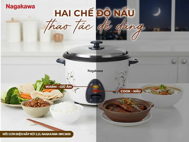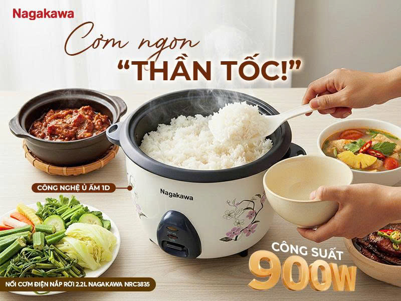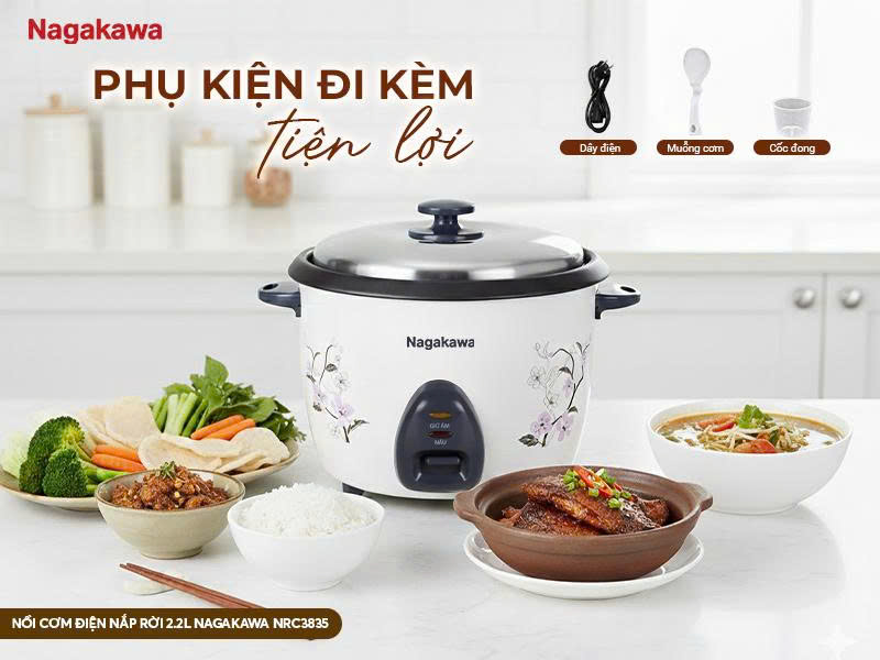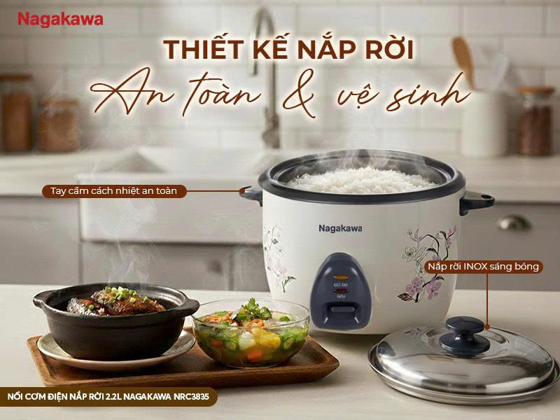 NỒI CƠM ĐIỆN NẮP RỜI 2.2L NAGAKAWA NRC3835 – ĐỦ ĐẦY CHO BỮA CƠM NHÀ ĐÔNG ĐỦ
