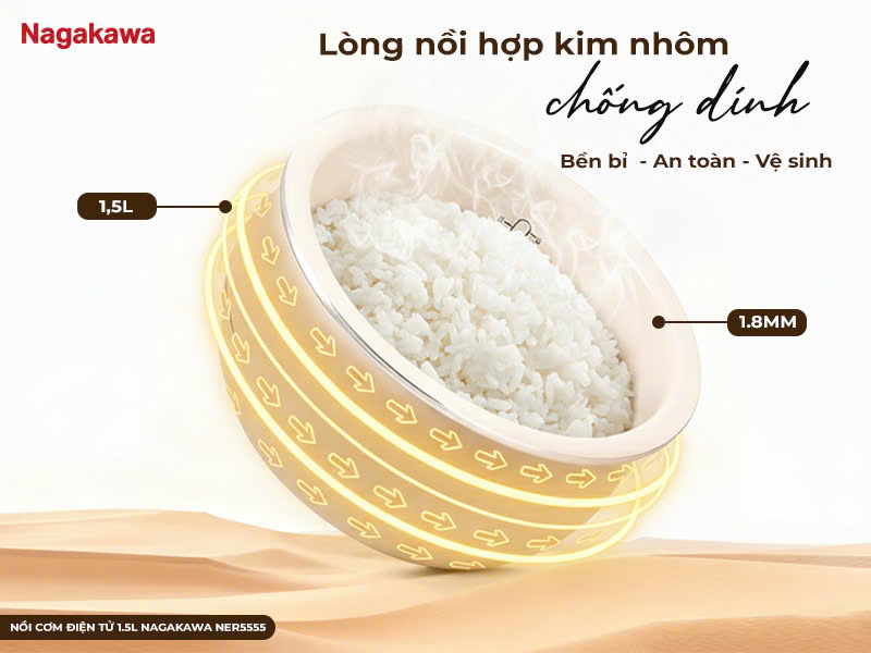 NỒI CƠM ĐIỆN TỬ 1.5L NAGAKAWA NER5555 – ĐA NĂNG CHO NHỊP SỐNG HIỆN ĐẠI