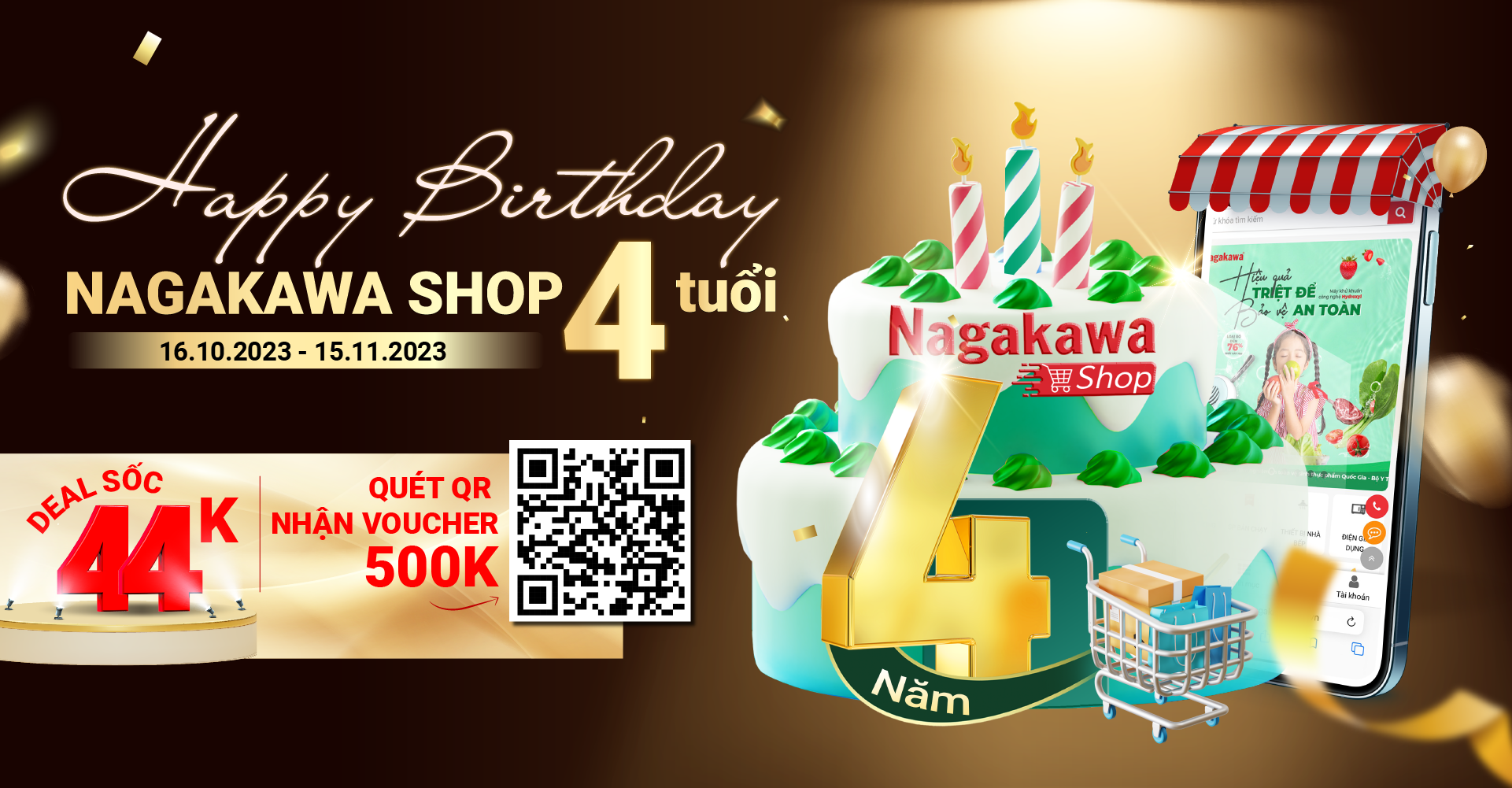 Thật tuyệt vời khi được cùng bạn đón tuổi lên 4! Chào đón dấu mốc quan trọng này, Nagakawa shop tưng bừng ưu đãi cho các dòng sản phẩm thiết bị nhà bếp cao cấp. Đây chính là lời cảm ơn chân thành đến bạn - những người khách hàng đã luôn ủng hộ Nagakawa Shop trong thời gian qua.