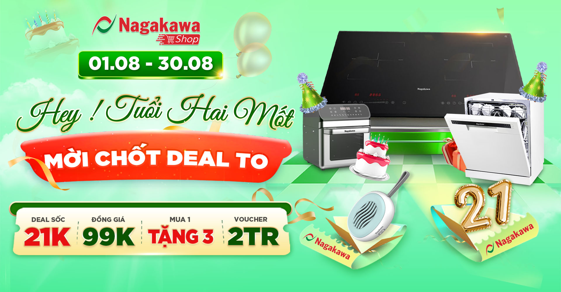 Đến hẹn lại lên, một sinh nhật nữa lại đến, Nagakawa bước đến tuổi“hai mốt” cùng loạt ưu đãi cực chất. Cùng khui deal xem từ 8 - 30.8 Nagakawa shop có gì tưng bừng, deal gì háo hức khiến bạn muốn mua ngay?