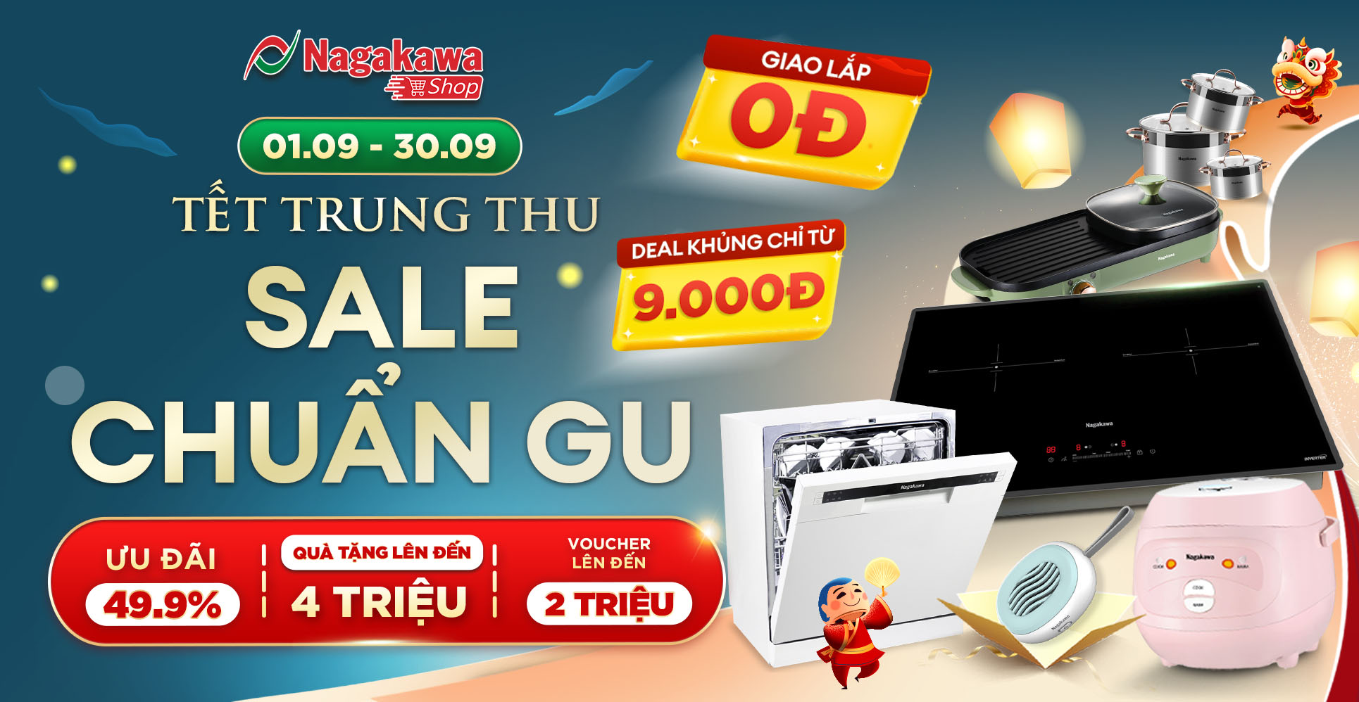 Nagakawa Shop sale chuẩn gu nhân dịp tết trung thu từ 10/9-30/9/23. Bùng nổ deal sốc chỉ từ 9k, quà tặng đến 4 triệu đồng, voucher đến 2 triệu. Tham gia mua sắm tại https://shop.nagakawa.com.vn/landing-page-nagakawashop.html nhé!
