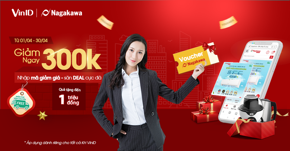 Sau mỗi lần mua sắm tích điểm cho thẻ VINID, các bạn có thể sử dụng ngay số điểm này để đổi VOUCHER của Nagakawa trị giá đến 300K dùng để mua những đồ dùng, gia dụng, thiết bị nhà bếp dành cho gia đình mình.