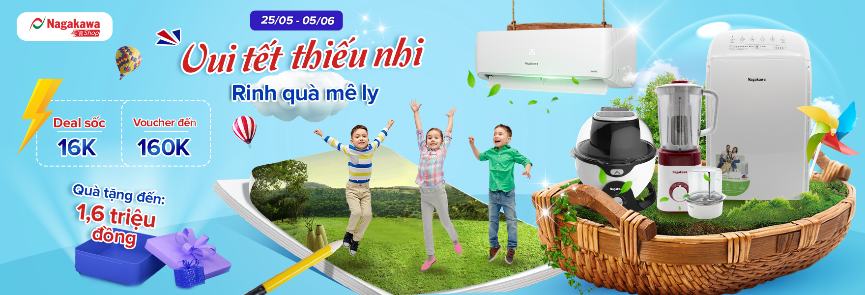 Hưởng ứng ngày tết thiếu nhi 01/06, từ ngày 25/5 - 5/6/2021 Nagakawa shop khởi động chương trình “Vui tết thiếu nhi - Rinh quà mê ly” với nhiều chương trình khuyến mãi, deal sốc và quà tặng hấp dẫn.