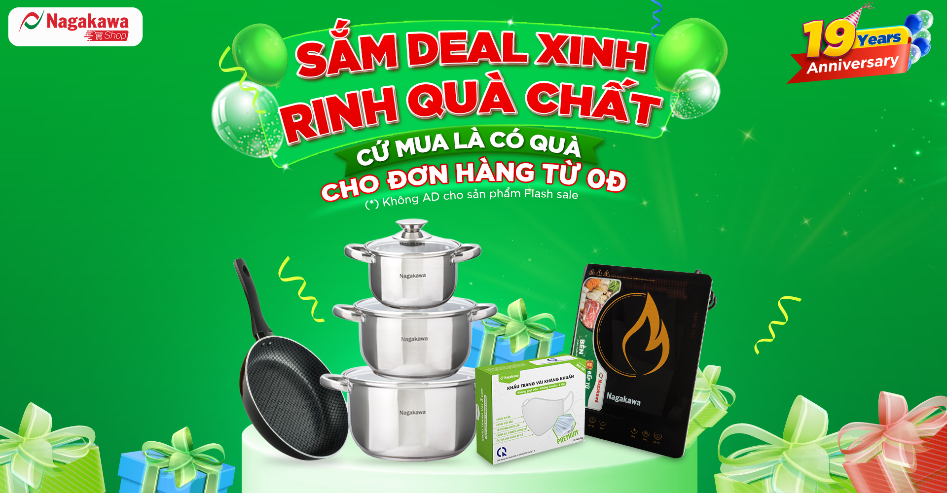 Nằm trong chuỗi sự kiện mừng sinh nhật lần thứ 19, Nagakawa miễn phí vận chuyển mọi đơn hàng trên toàn quốc từ ngày 1.8.2021 – 31.8.2021. Khuyến mãi như một lời tri ân đến khách hàng và san sẻ gánh nặng mùa dịch tới người tiêu dùng trong nước.