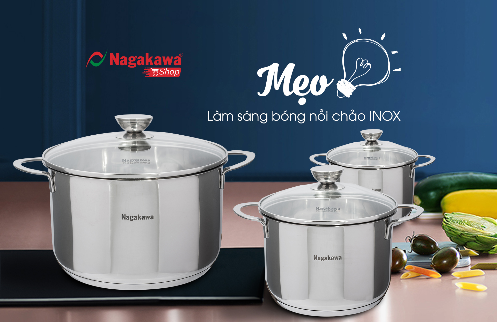 Rất nhiều gia đình ngày nay lựa chọn nồi chảo inox để chế biến thức ăn vì so với nồi nhôm, nồi inox giữ được độ sáng bóng lâu bền hơn. Nói vậy, không có nghĩa nồi inox không bị hoen ố. Khi đó, chiếc nồi mất hẳn độ sang trọng thường thấy.Rất nhiều gia đình ngày nay lựa chọn nồi chảo inox để chế biến thức ăn vì so với nồi nhôm, nồi inox giữ được độ sáng bóng lâu bền hơn. Nói vậy, không có nghĩa nồi inox không bị hoen ố. Khi đó, chiếc nồi mất hẳn độ sang trọng thường thấy.Hãy cùng Nagakawa Shop tham khảo mẹo làm sáng bóng đồ dùng inox rất đơn giản mà lại hiệu quả nhé.