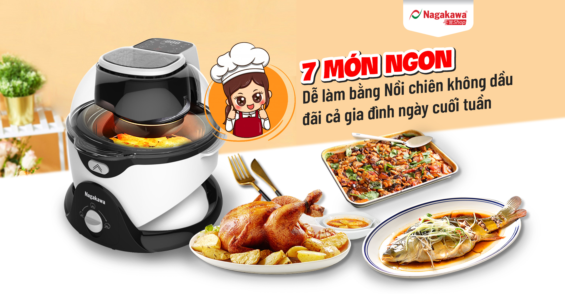 Chỉ với vài phút vào bếp bạn đã có món nướng thơm ngon cho cả gia đình thưởng thức dịp cuối tuần, với công thức đơn giản bạn không phải tốn quá nhiều thời gian cho việc nấu nướng nhưng vẫn đảm bảo mọi người sẽ mê món của bạn. Nagakawa xin chia sẻ một số bí quyết giúp chị em làm các món ngon với Nồi chiên không dầu một cách nhanh chóng
